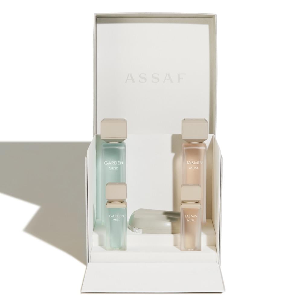 مجموعة مسك عساف صمّمت لتكون رفيقتك في كل صباح، حيث تضم أربع عطور مسك آسرة، بالإضافة إلى بودرة جسم عطرية طبيعية، لتُكمل روتينك اليومي بنعومة وانتعاش.