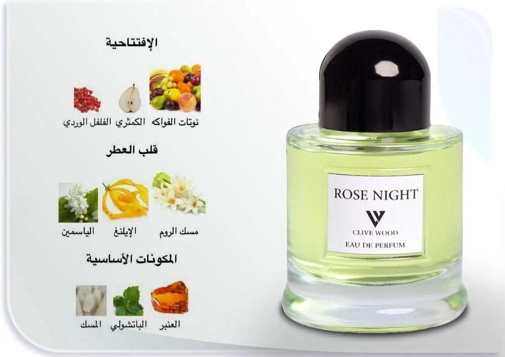 لا تترددوا في تجربة هذا العطر الفريد والرائع، وتعرفوا على الجمال الذي يأتي به عطر روز نايت من كلايف وود.